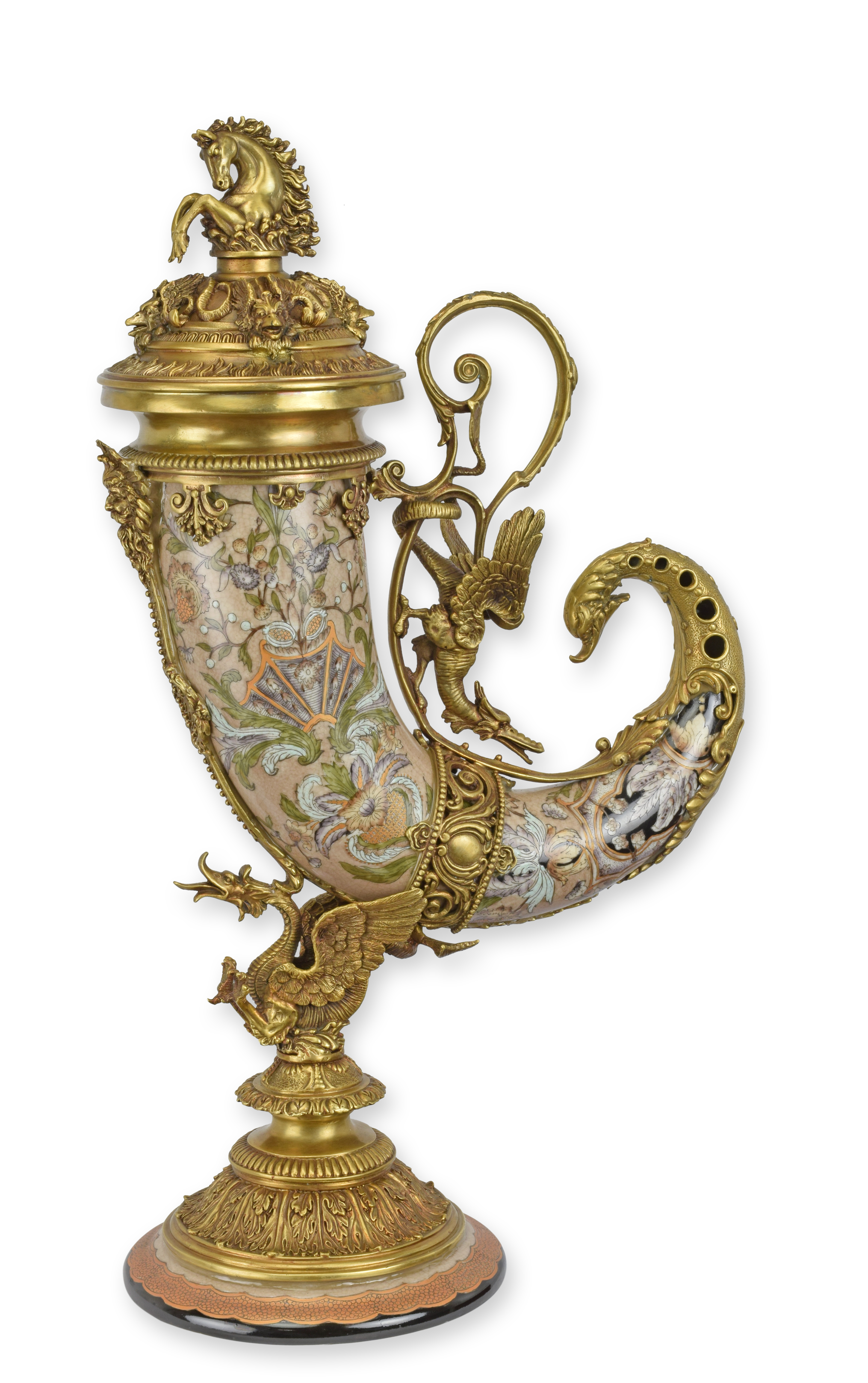 Corno della abbondanza in porcellana con montatura in bronzo replica design retrò decorazione