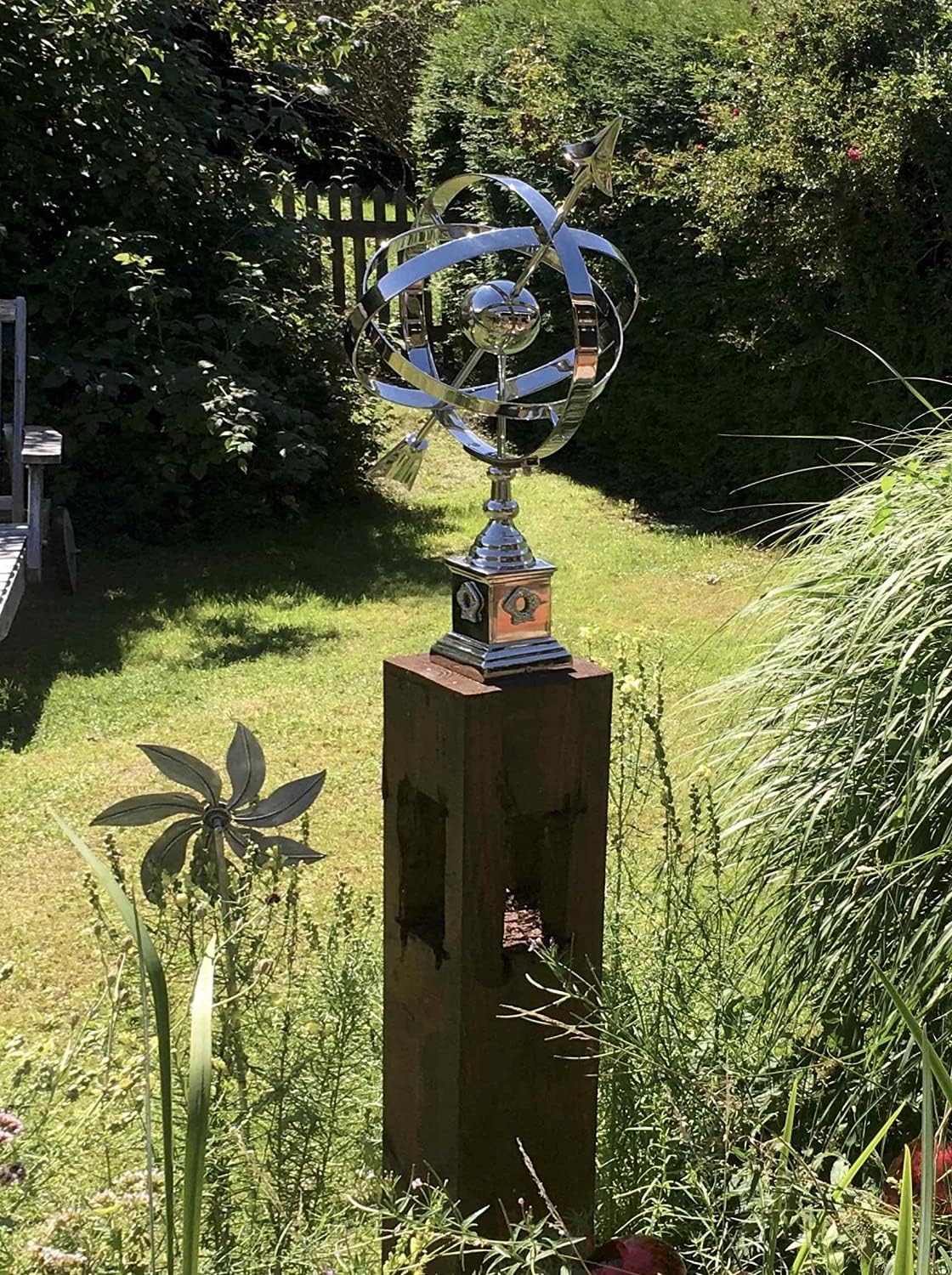 Splendida meridiana in alluminio nichelato, realizzata secondo un antico modello. Come si può vedere dalle foto, si tratta di un oggetto decorativo di alta qualità in stile antico. L'articolo è lavorato a mano secondo la tradizione per ottenere un aspetto antico. Sono possibili minime variazioni. Le dimensioni della meridiana sono le seguenti: 40 x 59 x 32 cm (L x A x P). Grazie mille, caro cliente, per la splendida foto con la meridiana nel tuo giardino. Ci ha fatto molto piacere :-)